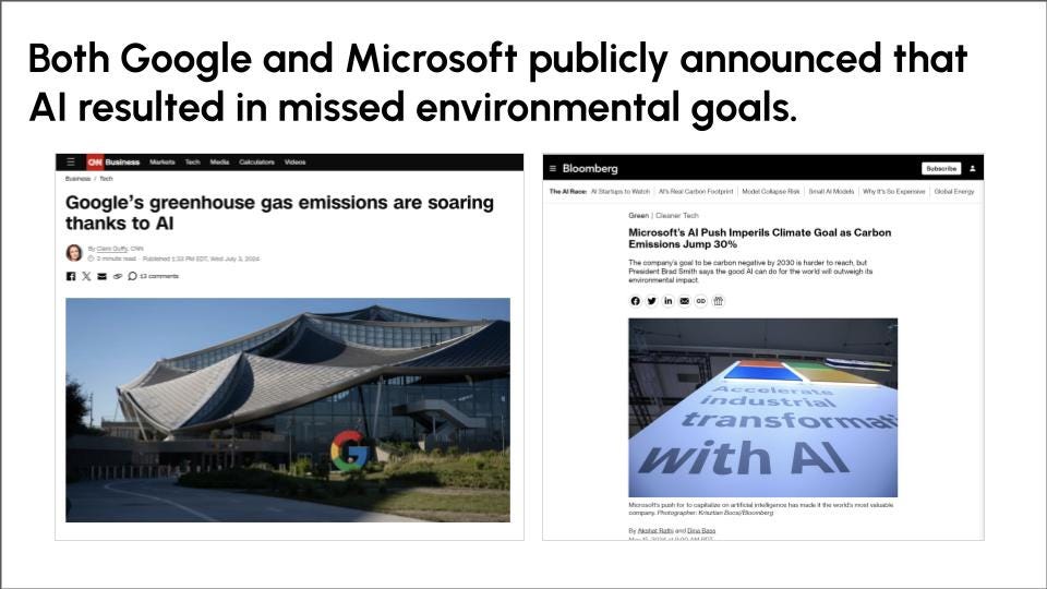 Tech giants heavily investing in AI, like Microsoft and Google, are missing their climate goals.