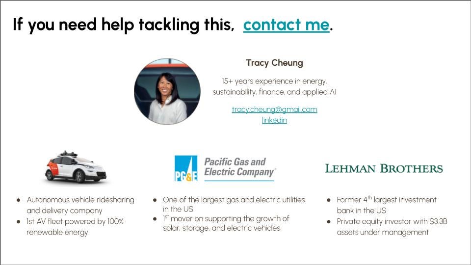That's why we've brought in Tracy. With her background leading sustainability at AI company Cruise and over a decade of experience at the largest U.S. utility, she's uniquely positioned to tackle this critical issue.