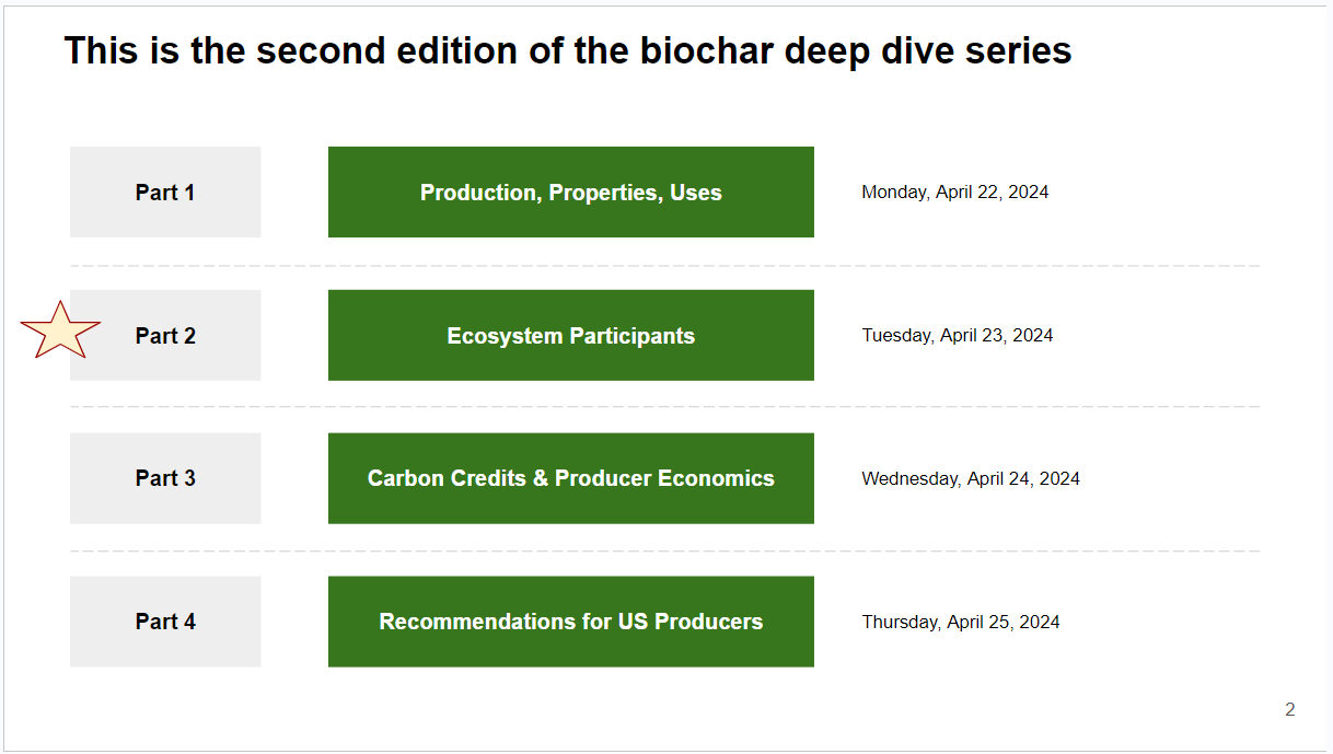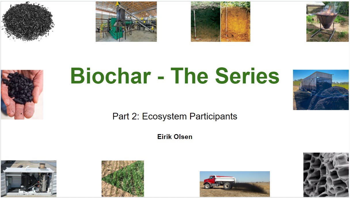 Welcome to Part 2 of Eirik Olsen’s series on Biochar. Today he will dive into the biochar ecosystem: from producers to purchasers.