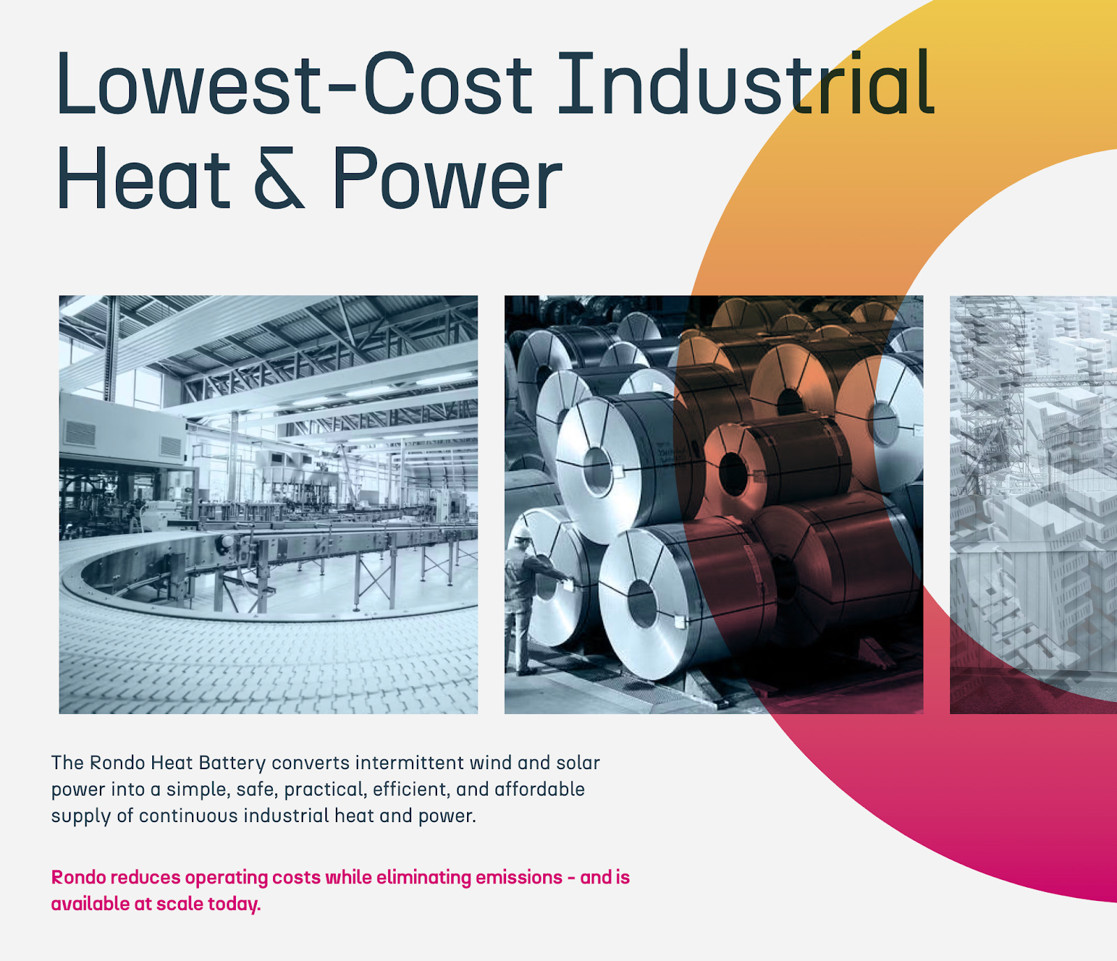 Look back at Rondo’s web copy. It doesn’t waste 200 words explaining how the tech works. The page says that Rondo makes “industrial heat batteries.” The in-depth explanation is tucked into a technology page.