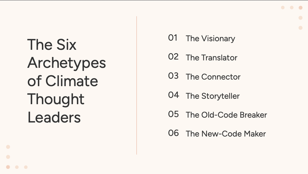 Think of Thought Leadership for Humans as a classroom, lab, and community space rolled into one. The goal: equip would-be climate leaders with the structures, processes, inspiration, and feedback they need to finally step into their own voices.
