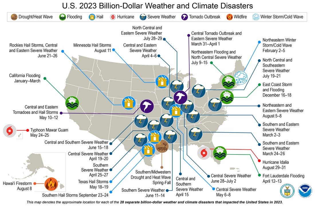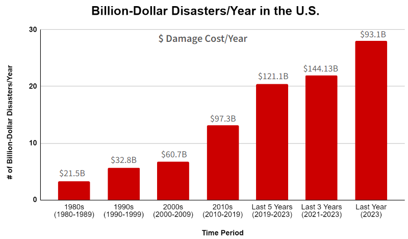 In 2023 alone, the U.S. experienced 28 separate weather and climate disasters resulting in at least $1 Billion in loss and damage [6].