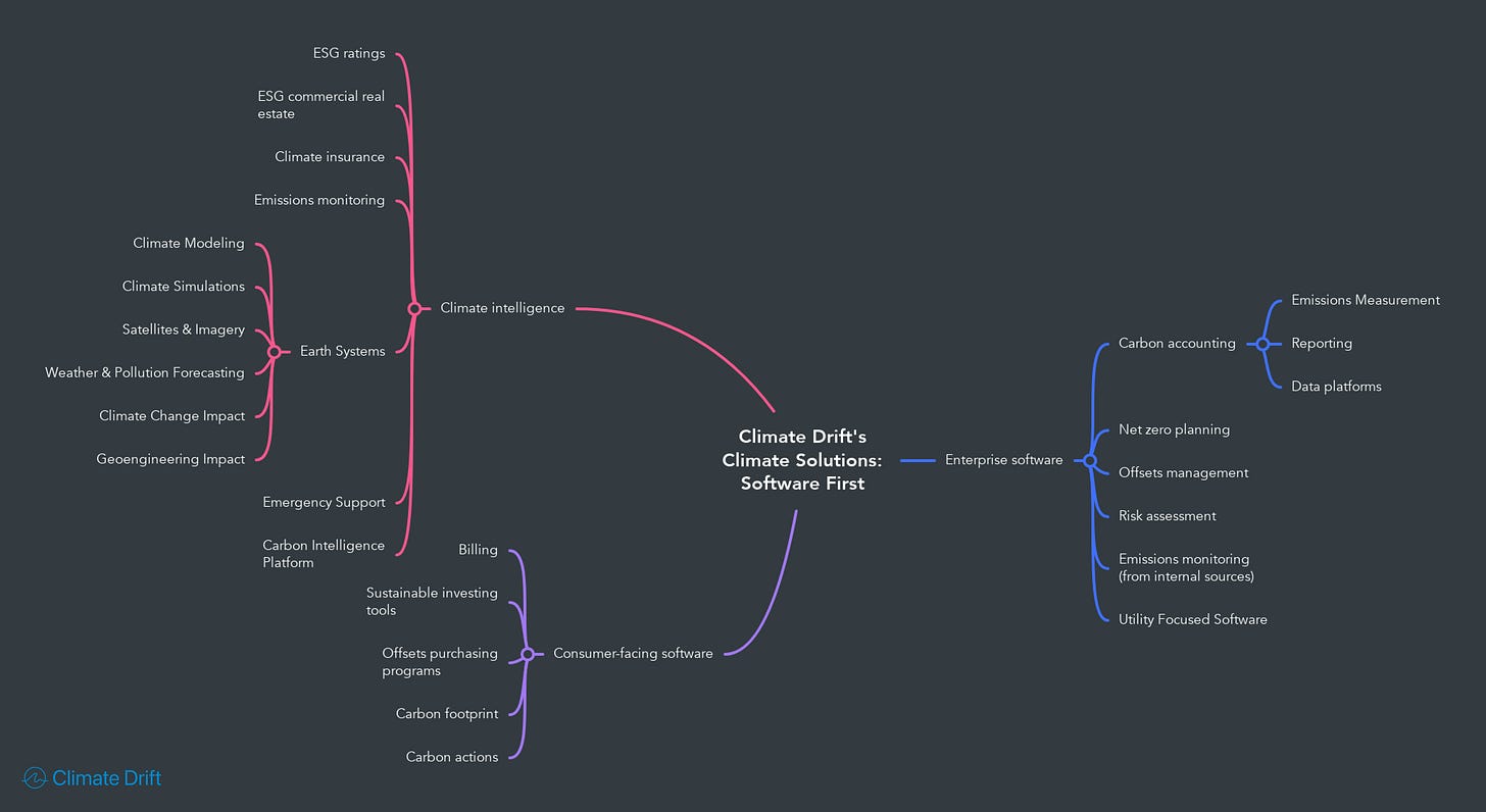 Climate Intelligence: This encompasses tools that focus on aspects like ESG ratings, sophisticated climate modeling, and insights into earth systems.