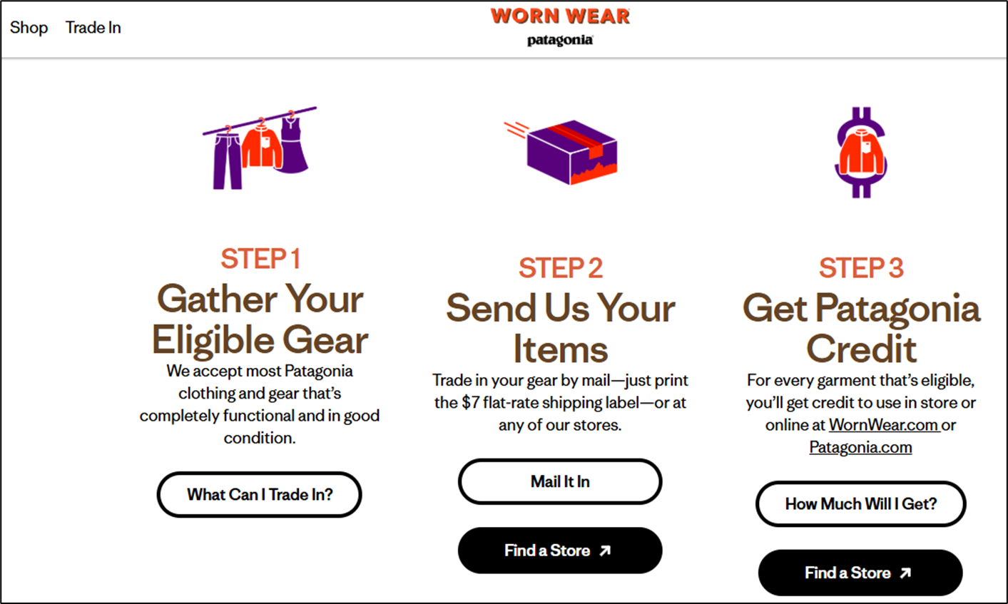 Patagonia clothing and gear can be traded in at a retail location or via a mail in program as described above. Patagonia Worn Wear