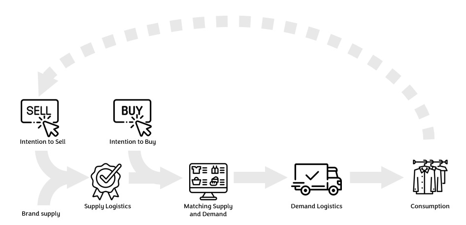 Connected API and CRM System Once a second hand product is purchased off of a branded resale platform, the resale provider will either plug into the brandâs network of partners, or leverage their own third party partners, to enable the logistics of redistribution. They may support communication with both the buyer and seller within a P2P context, ensuring a positive shopper experience.