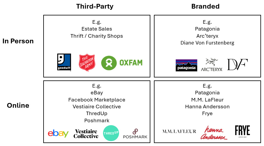 Taking a step back, the resale market, from the consumer perspective, can be broadly described in two formats: in-person or online. Furthermore, both in-person and online formats can be broken down further into third-party or branded platforms.