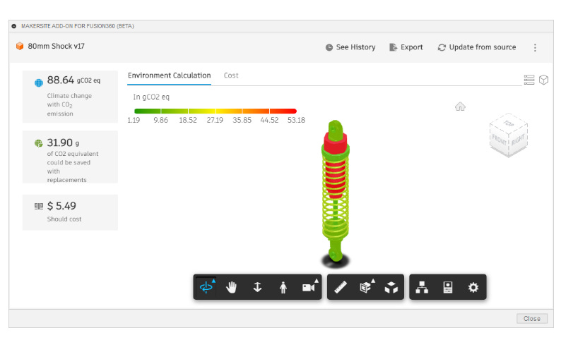 “The stats tell us that 80% of the ecological impacts of a product are locked down in the design phase. Therefore, the design phase of a product is the first and most necessary stage to get more sustainable goods into the world successfully,” says Neil D’Souza, founder of Makersite. “However, eco-design is only feasible when designers have data about the sustainability of their product and its compliance, costing, environmental, health, and safety criteria. By integrating our data, AI, and calculation engines into Fusion, product designers are provided with clear and actionable insights so they can decide how to make their designs more sustainable.”