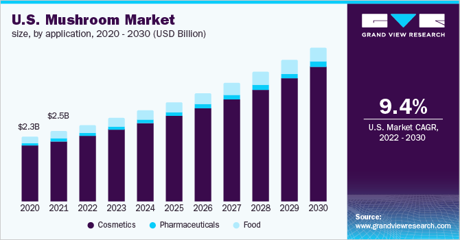 When we step back and look at the bigger picture, the U.S. mushroom market, valued at $1.4 billion, is just a fraction of a much larger pie. Globally, mushrooms are a booming $87 billion industry. But wait, there's more. Extend the lens to the broader $600 billion ingredients market, which includes things like veggie burgers, and you start to see the enormous potential for mushrooms to go mainstream. Add to this the adjacent $180 billion-plus market for value-added products, like prepackaged salad kits, and it becomes clear that mushrooms have a role to play in multiple high-value markets.